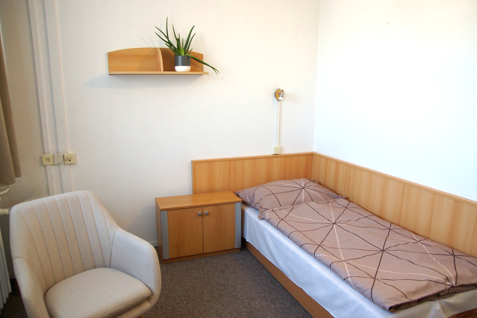 Jednolůžkové pokoje jsou se sociálním zařízením.